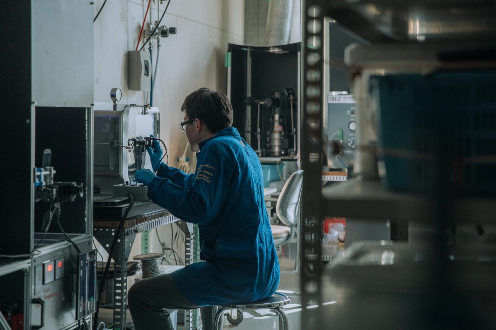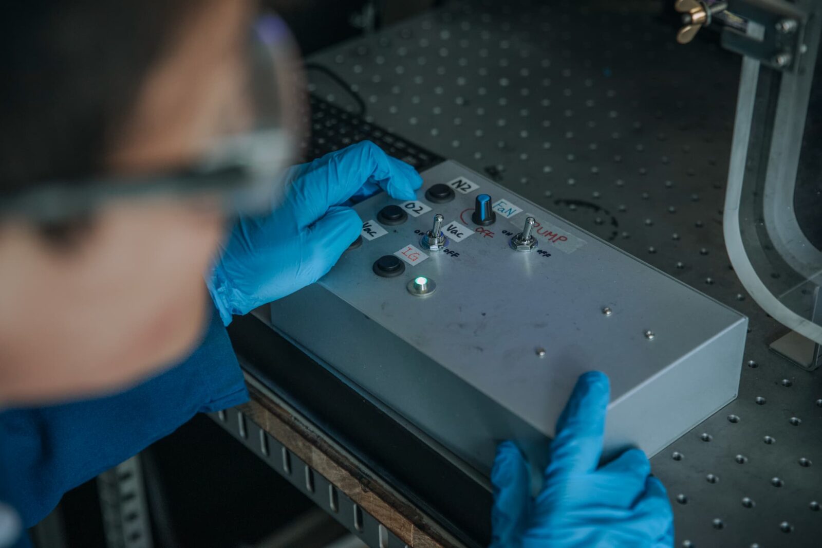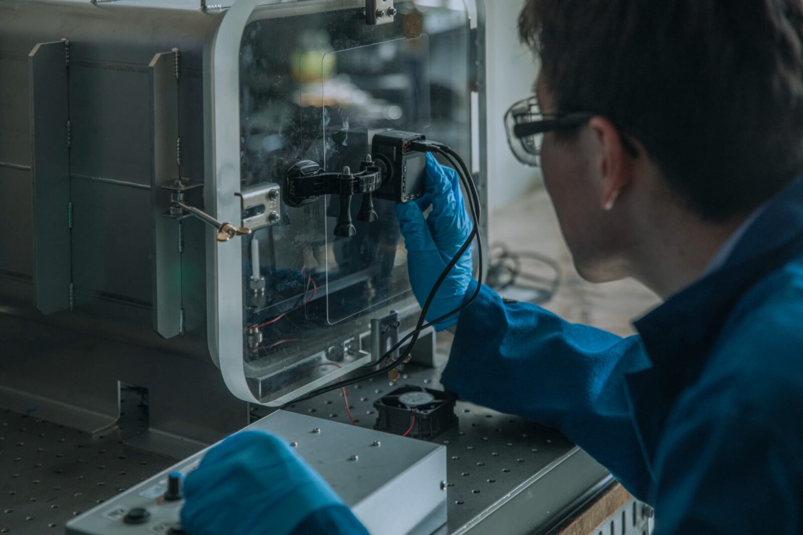 燃焼容器内の気圧と酸化剤の組成を調整する様子