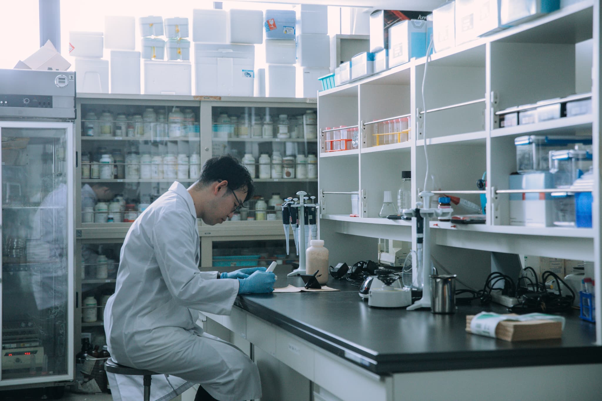 中屋氏の出発点は地球科学分野に始まる。水底に百年千年単位で眠る腐植物質を調べるため、大阪大学時代に共同研究をしていた株式会社堀場製作所(京都本社)の蛍光分析計を用いたことが、今に至る転機に繋がった。